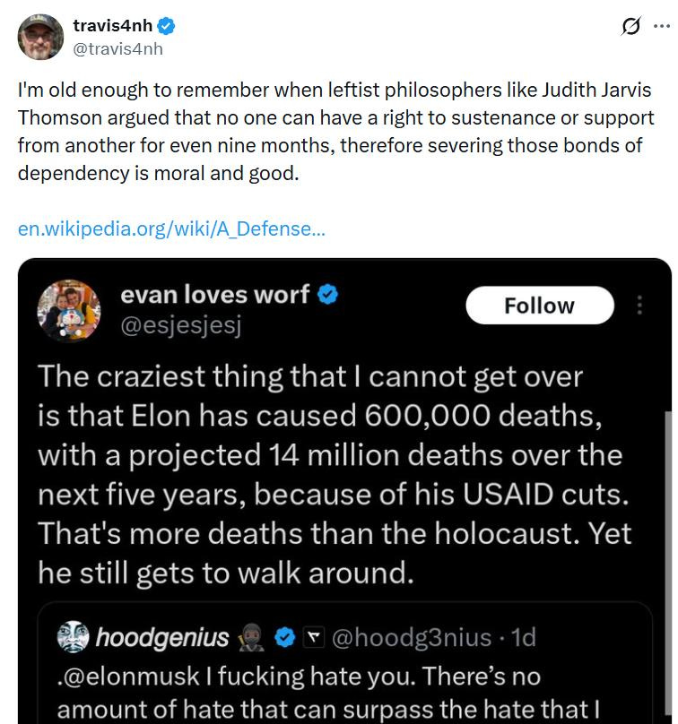 Bodily autonomy does not hinge on whether another being needs your body to survive. It hinges on consent. No person is legally required to use their body — organs, blood, tissue, or labor — to sustain another, even if refusal results in death. That principle applies universally.
