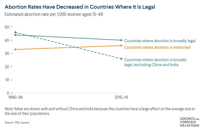 International research further undermines the claim. A major analysis published in The Lancet, one of the world’s most respected peer-reviewed medical journals, found that abortion rates are lower in countries where abortion is broadly legal and contraception is widely accessible. By contrast, abortion rates are higher — and far more dangerous — in countries where abortion is restricted and birth control access is limited.